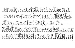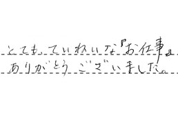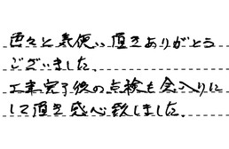 色々と気遣い頂き、ありがとうございました。工事完了後の点検も念入りにして頂き、感心致しました。