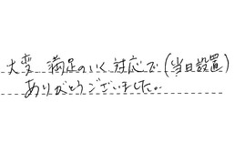 大変満足のいく対応で(当日設置)、ありがとうございました。