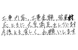 工事内容、工事金額、営業対応ともに大変満足をしています。今後とも宜しくお願いします。
