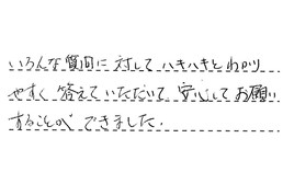 いろんな質問に対して、ハキハキとわかりやすく答えていただいて、安心してお願いすることができました。