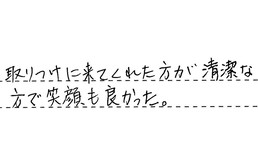 取りつけに来てくれた方が清潔な方で、笑顔も良かった。