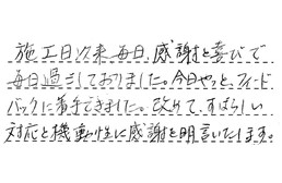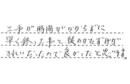 仕事をしているので、工事日など無理なお願いをしてしまったのですが、快く聞いていただけ、とても助かりました。ありがとうございました。
