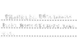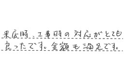 電話の対応も良く、見積りもその日のうちに来てくれて、取り付け作業もスムーズで、ていねいでした。