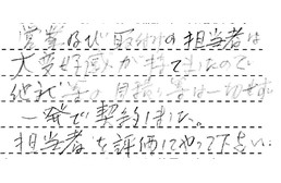 営業及び取付けの担当者は、大変好感が持てましたので、他社等の見積り等は一切せず、一発で契約しました。担当者を評価してやって下さい。