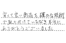 見積もり工事と迅速に対応していただき、ありがとうございました。