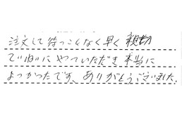 注文して待つことなく、早く親切ていねいにやっていただき、本当によかったです。ありがとうございました。