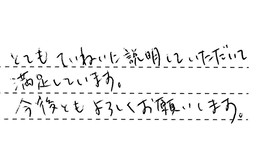 とてもていねいに説明していただいて、満足しています。今後ともよろしくお願いします。