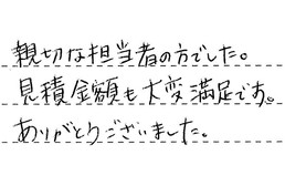 親切な担当者の方でした。見積金額も大変満足です。ありがとうございました。