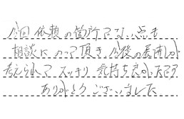 担当者がやさしくて、親切でした。次回も是非お願いしたいと思っております。よろしく。