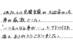 他社との見積金額が、大変安かった事が感激でした。「一つ気になる事が…」とアドバイスも頂き、ありがとうございました。