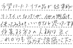 工事に来て下さった山本さんは、依頼したことは全て対応でき、信頼できました。