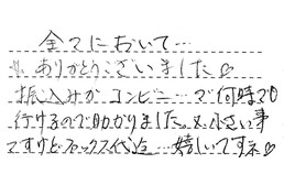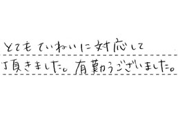 親切、丁寧な対応で、満足しております。ありがとうございました。