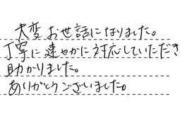 大変お世話になりました。丁寧に速やかに対応していただき、助かりました。ありがとうございました。