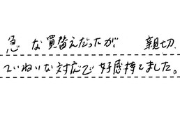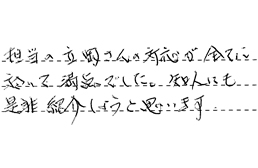 加藤さんに親切に対応して頂き喜こんでおります。ありがとうございました。お友達にも紹介したく思います。