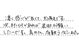 凄く感じが良くて大満足です。次、また何かあれば是非お願いしたいです。鳥井さん有難うございました。