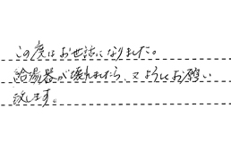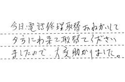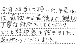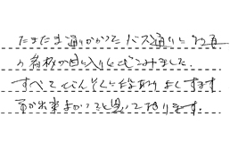 たまたま通りかかったバス通りに御社の看板が目に入りとびこみました。すべてびんそくに段取りよくすます事が出来よかったと思っております。