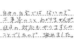 自分の自宅ではないので工事等のことわかりませんが後日の対応もやりますとのことでしたので決めました。