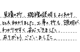 見積の折、機種の説明もよくわかりとても助かりました。工事の折も説明がわかりやすく安心できました。ありがとうございました。