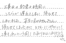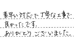 素早い対応で、丁寧な工事で、良かったです。ありがとうございました。