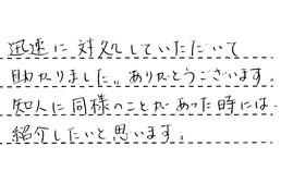 迅速に対処していただいて、助かりました。ありがとうございます。知人に同様のことがあった時には、紹介したいと思います。