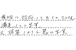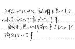 対応がはやく、説明も良くしてくれましたので、良かったです。金額も思ったより安くできたので、満足しています。