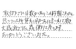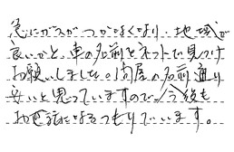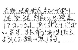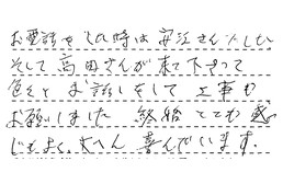 お電話をその時は安江さんでした。そして高田さんが来て下さって、色々お話しをして、工事もお願いしました。終始とても感じがよく、大へん喜んでいます。