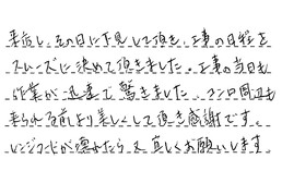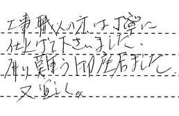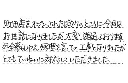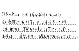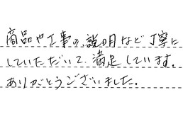 商品や工事の説明など、丁寧にしていただいて、満足しています。ありがとうございました。