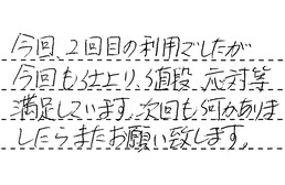 とても、丁寧にやって頂きまして、次も何かありましたら、お願いしようかな、と思います。