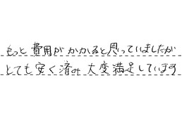 もっと費用がかかると思っていましたが、とても安く済み、大変満足しています。