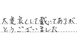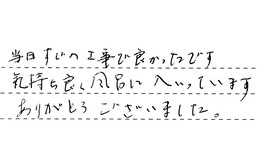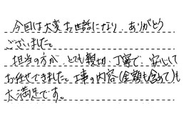 今回は大変お世話になり、ありがとうございました。担当の方が、とても親切・丁寧で、安心してお任せできました。工事の内容(金額も含めて)も大満足です。