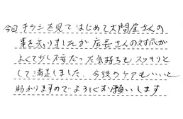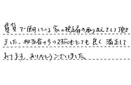 今回チラシを見て、はじめて大問屋さんの事を知りましたが、店長さんの対応がよくて、少し不安だった気持ちもスッキリとして、満足しました。今後のケアもいいと助かりますので、よろしくお願いします。