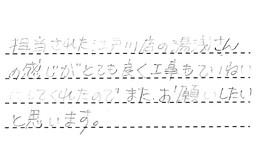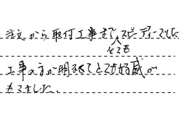 注文から取付工事まで、とてもスピーディーでした。工事の方が明るくて、とても好感がもてました。