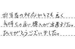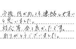 今後、何かあっても連絡しやすいと思いました。対応等、全て良かったです。ありがとうございました。
