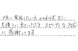 工事が予定よりも早く終り、お二人の手ぎわの良さにびっくりしました。とっても丁寧でした。一週間前倒しで工事までして頂き、感謝です。ありがとう。