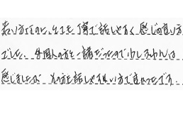 先輩職人が工事の作業手順など、後輩に大変良い指導をしていて、感心しました。良い職人が増えると、会社が発展すると思います。