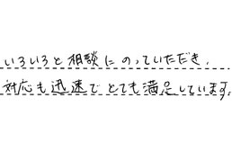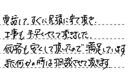 電話して、すぐに見積に来て頂き、工事も手早くやって頂きました。価格も安くして頂いたので、満足しています。また何かの時は、相談させて頂きます。