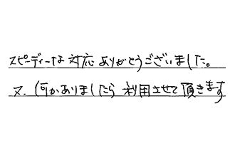 スピーディーな対応、ありがとうございました。又、何かありましたら、利用させて頂きます。