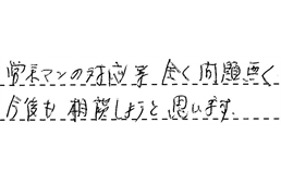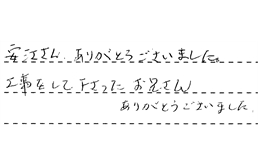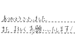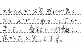お世話になりありがとうございました。今回は、偶然折り込み広告を見つけ、お願いする事にしました。数軒ホームセンターを回りましたが、弊社に決めさせていただきました。