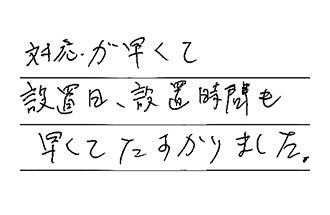 対応が早くて、設置日、設置時間も早くて、たすかりました。
