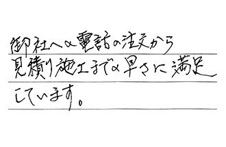 御社への電話の注文から、見積り施工までの早さに満足しています。