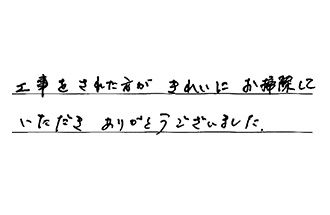 工事をされた方が、きれいにお掃除していただき、ありがとうございました。