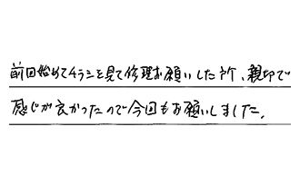 今後の修理の場合、家の近くですぐ連絡し来て頂けるので、大変便利だと思い、やって頂きました。ありがとうございました!