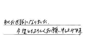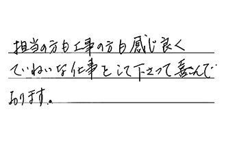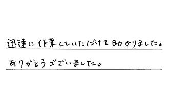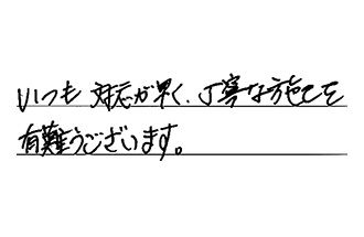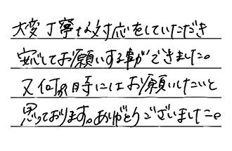 大変丁寧な対応をしていただき、安心してお願いする事ができました。又何かの時には、お願いしたいと思っております。ありがとうございました。