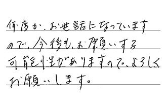 御社への電話の注文から、見積り施工までの早さに満足しています。