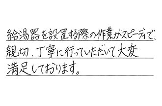 給湯器を設置する際の作業がスピーディで、親切・丁寧に行っていただいて、大変満足しております。
