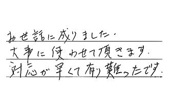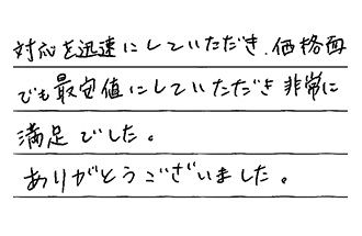 対応を迅速にしていただき、価格面でも最安値にしていただき、非常に満足でした。ありがとうございました。