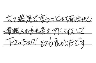 大々満足で、言うことが有りません。工事職人の方も、色々アドバイスして下さったので、とても良かったです。