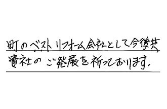 町のベストリフォーム会社として、今後共、貴社のご発展を祈っております。