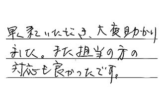 営業の方の対応がとても早く、工事の完了までに2日と、とても喜んでいます。