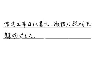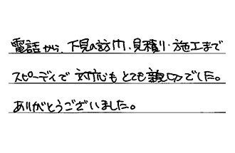 電話から、下見の訪問・見積り・施工まで、スピーディで、対応もとても親切でした。ありがとうございました。